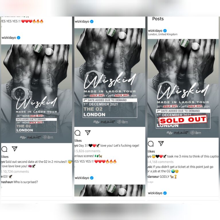 Legendary Nigerian singer Wizkid has made history as his third ticket sales for his concert at the O2 Arena in London sells out in a flash.