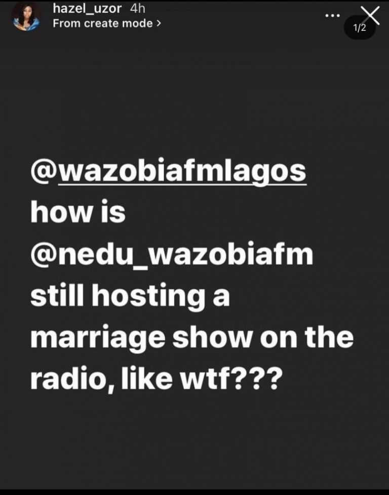 Uzor further wondered why Wazobiafm, Lagos still allows her husband to host marriage talks and shows even when he is one of the many men that beat their wives to stupor.